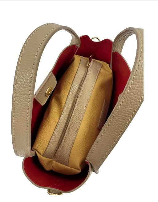 Elevate your style with Velin - the must-have accessory for everyday use. This new small two tote bag conveniently includes an added zippered pouch for extra storage and magnetic closure. Plus, the gold hardware and adjustable leather strap make for a chic and versatile crossbody option. Upgrade your bag game with Velin today!